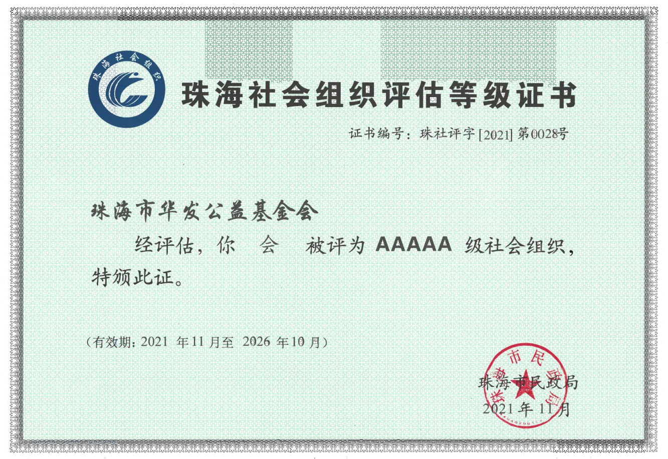 珠海市華發(fā)公益基金法人登記證書