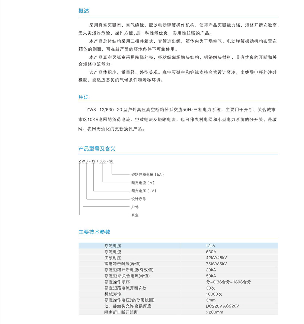 ZW8-12/630-20系列戶外高壓真空斷路器