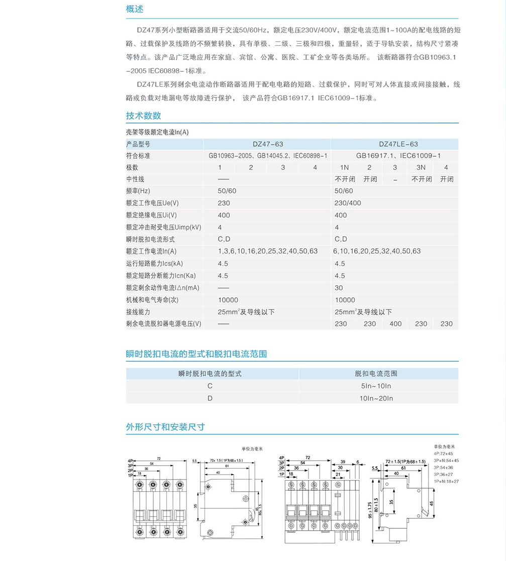DZ47/DZ47LE系列小型斷路器