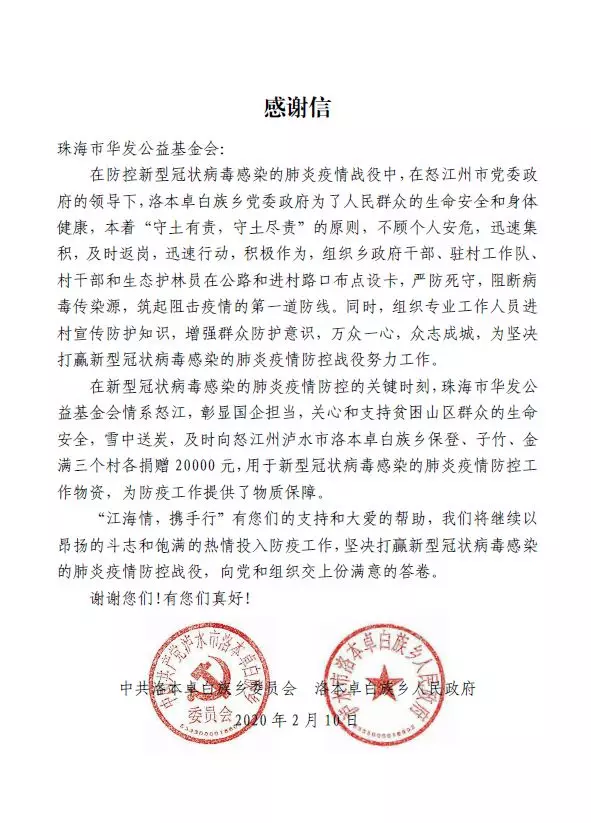 江海攜手,共渡難關(guān)——向廣東、云南怒江8個(gè)貧困村捐贈(zèng)16萬(wàn)元防疫資金