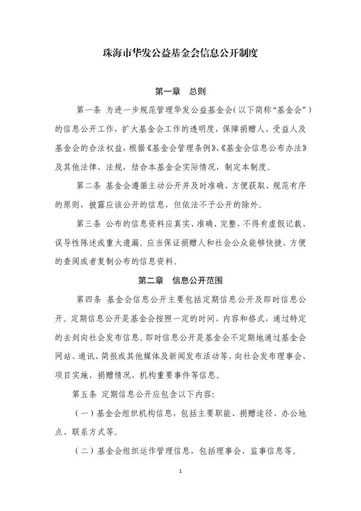 珠海市華發(fā)公益基金會信息公開制度