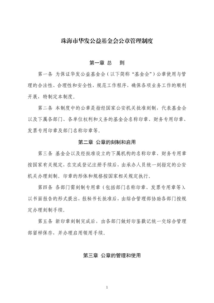 珠海市華發(fā)公益基金會公章管理制度