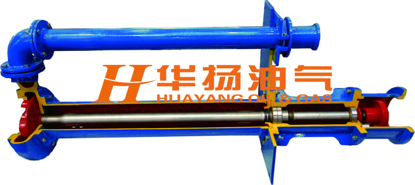 HYYZ series slurry pump mainly supply mud for Shale Shaker and centrifuges from the mud pit. The structure ofHYYZ series slurry pump is single level, single sucking Cantilever type, using bearing seat, supports seat, connecting pipe to connect the pump hydraulic parts of pump, Liquid discharged by the hydraulic hose assembly, pump’s impeller is Semi-open impeller, In the impeller import stretch equipped with mixing blades, the pump’s main features is submerged parts of the shaft, has enough of stiffness, between the impeller and pump shell did not set bearing, shaft seals, can conveying the medium contains larger concentration solid particles. The standard length of Pump Insert liquid is1.3 meters, and can be equipped with a suction tube if required. Shaft seals adopts the running of Insert pump into liquid, without shaft seal, transmission by vertical motor mounted on the motor bearing block, connected by coupling with the pump.